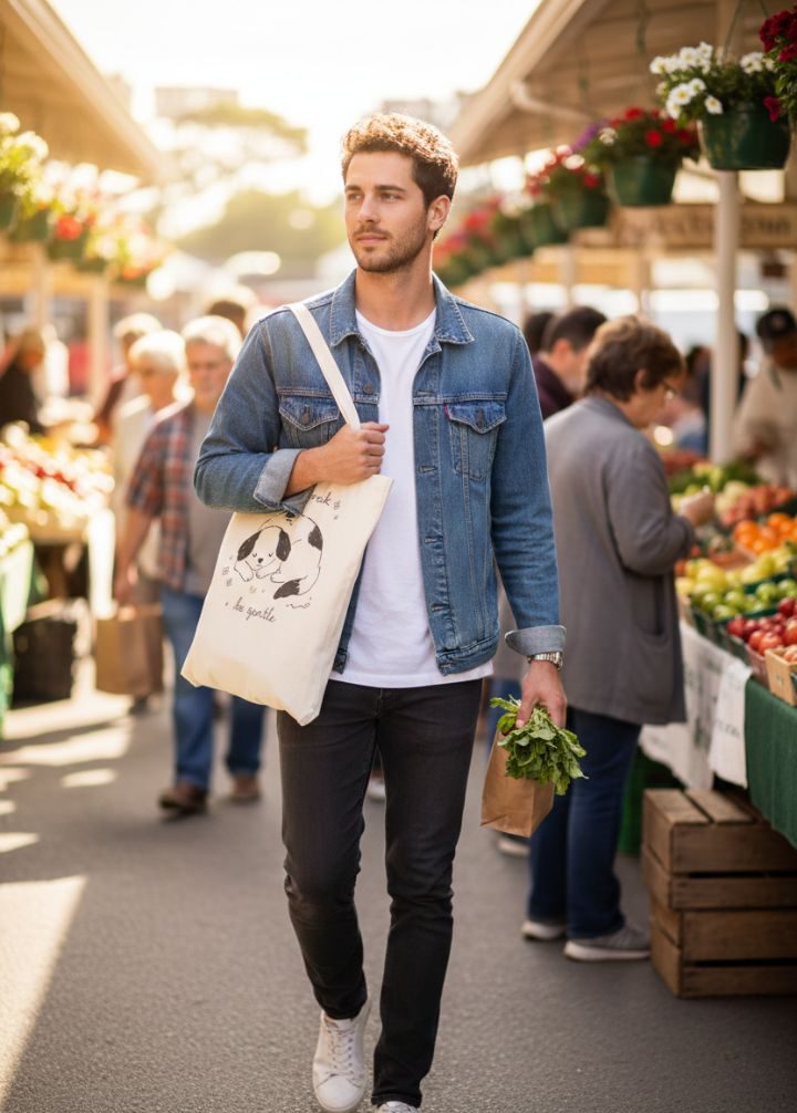 Totebag de algodón natural con ilustración central de líneas finas y diseño minimalista.